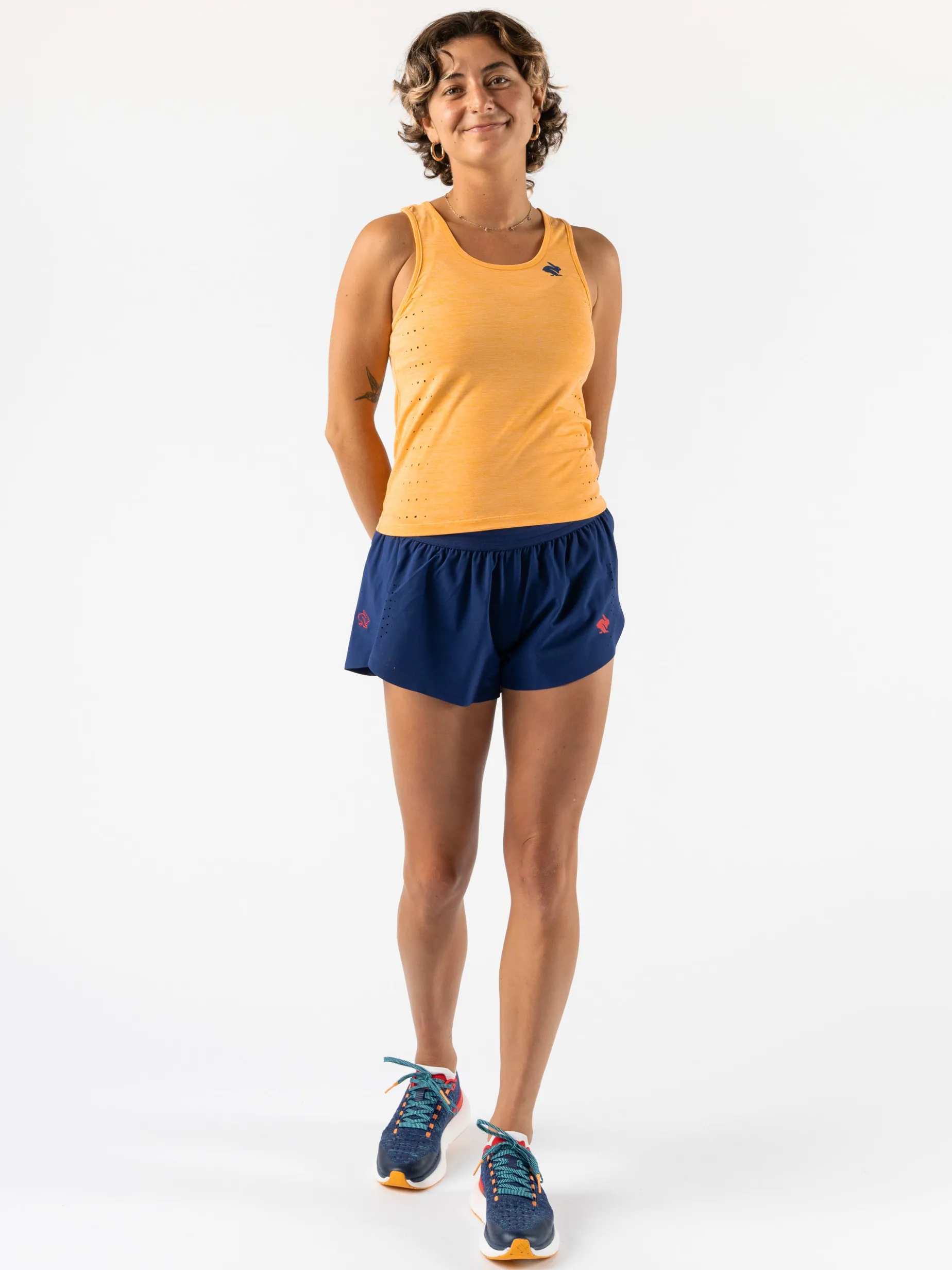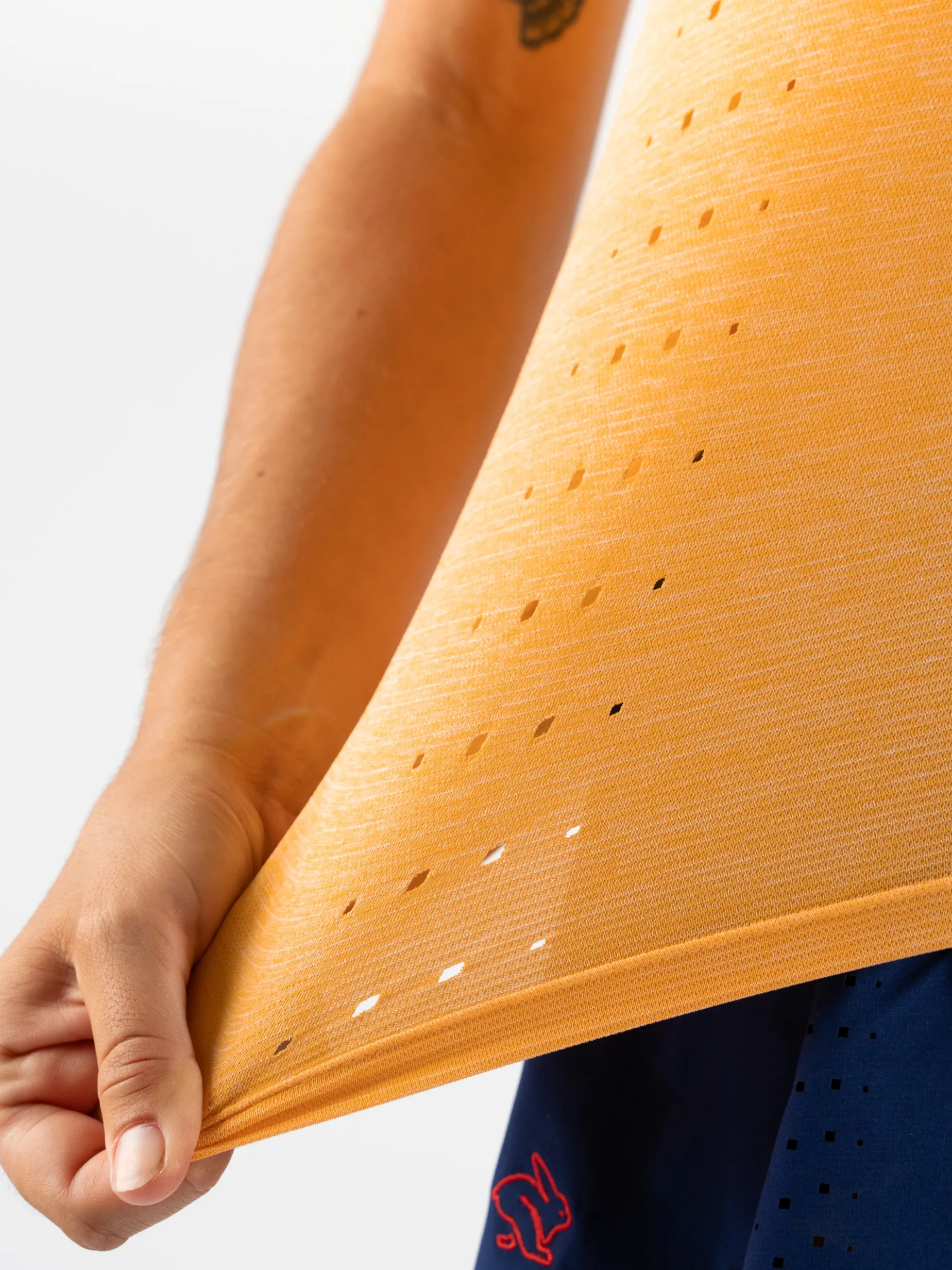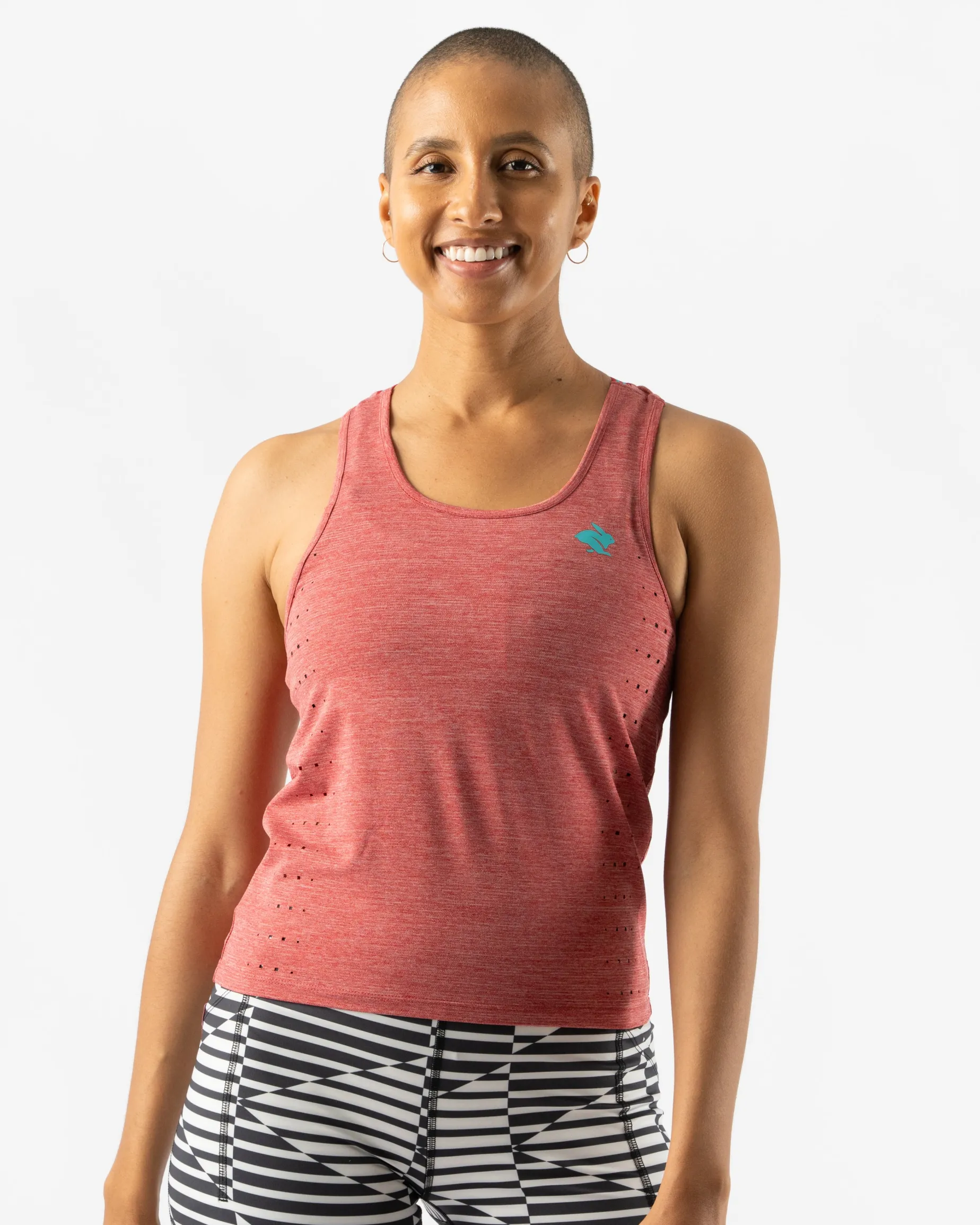 The flow is all you’ll know in our new tailored race tank. Laser-cut square perfs and anti-cling microtexture, plus other elevated details, keep you cool and comfortable from start to finish.