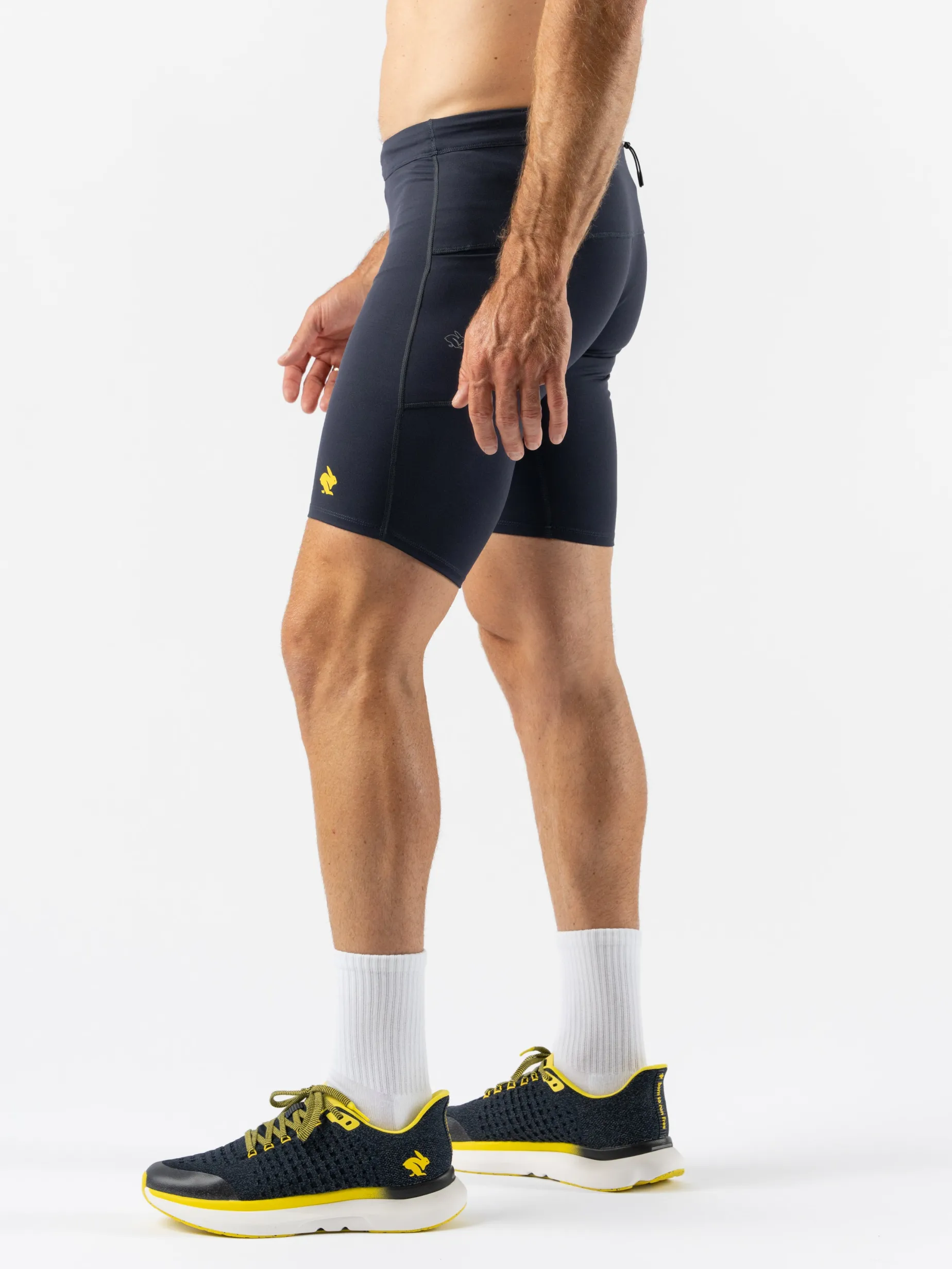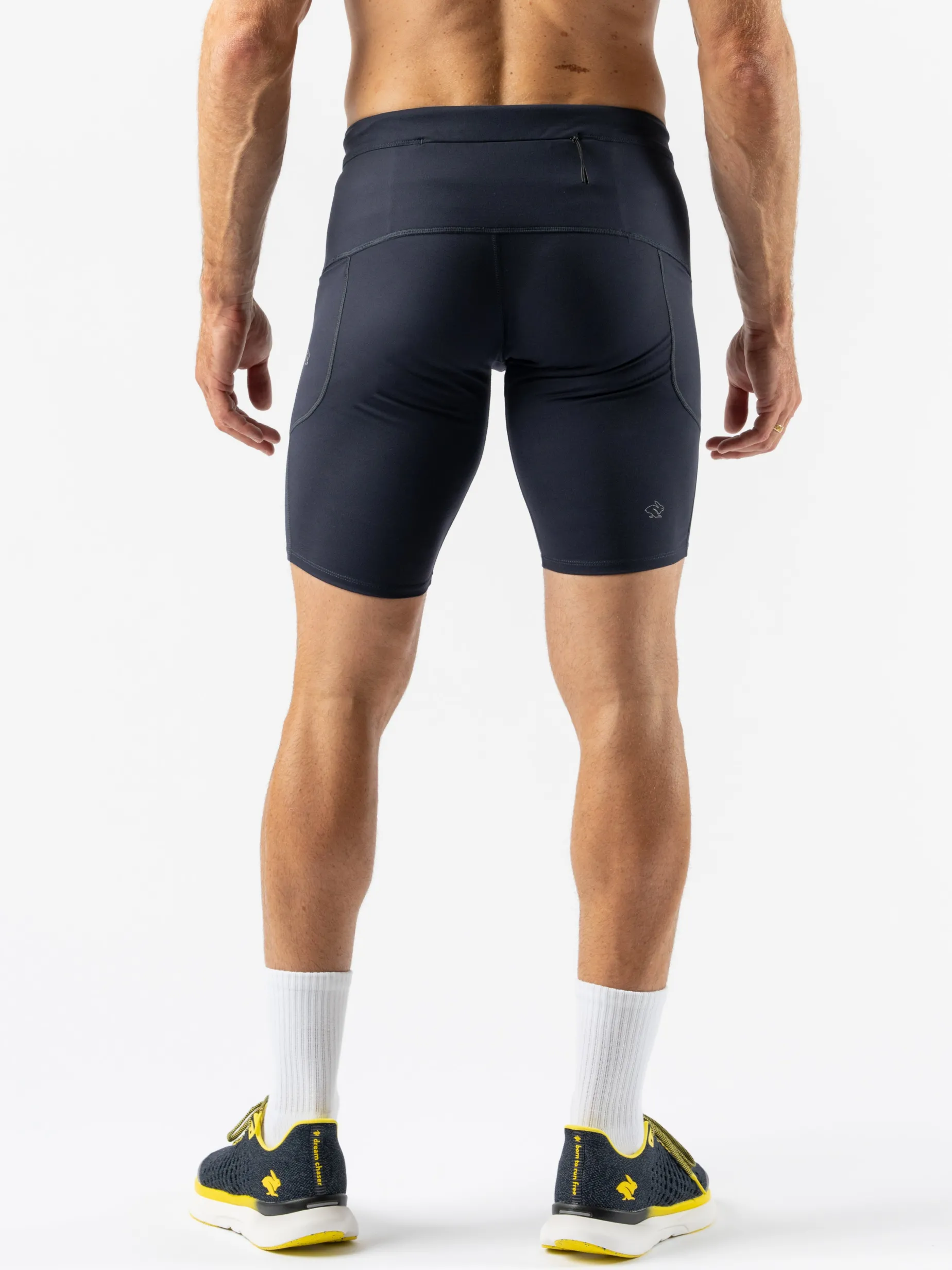 Built for speed—and now for safety—these half tights never ride up. The 360-degree reflective print illuminates when flashed by light, ensuring you’re seen on the darkest runs. Three pockets allow quick access to your phone and essentials while mid-sprint.